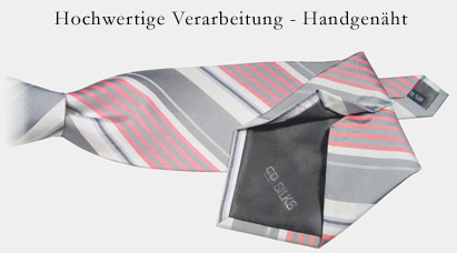 * * * * * * * * * * * * * * * * * * * * * * * * * * * * Ein edler Werbeträger mit Ihrem einzigartigen Design, Logo, Motiv oder Schriftzug vermittelt auf moderate Weise die Bedeutung Ihres Unternehmens. Eine ganz besondere Leistung bieten wir durch die kostenlose Erarbeitung eines exklusiven Designs durch direkte Absprache zwischen Ihnen und unserem Designstudio bis zur Produktionsreife. Gerne setzen wir aber auch eingereichte Designs um oder realisieren die Vorstellungen und Wünsche Ihrer Grafiker. Qualitäten: Reine Seide und Polyester (gewebt), Reine Seide und Polyester (Druckware) Mindestbestellmengen ab 50 Stück Krawatten Reine Seide gewebt oder 50 Stück Tücher Reine Seide bedruckt Digitaldruck ab 30 Stück. Die Verarbeitung unserer Krawatten entspricht den hohen Ansprüchen unserer Herrenausstatter. Tücher, Schals, Stolen oder andere Accessoires für die Damen machen den Event-Auftritt erst perfekt. Verpackung in Geschenk-Cello-Kartons (siehe Bild rechts) auf Wunsch. Gerne beantworten wir Ihre Fragen. * * * * * * * * * * * * * * * * * * * * * * * * * * * *